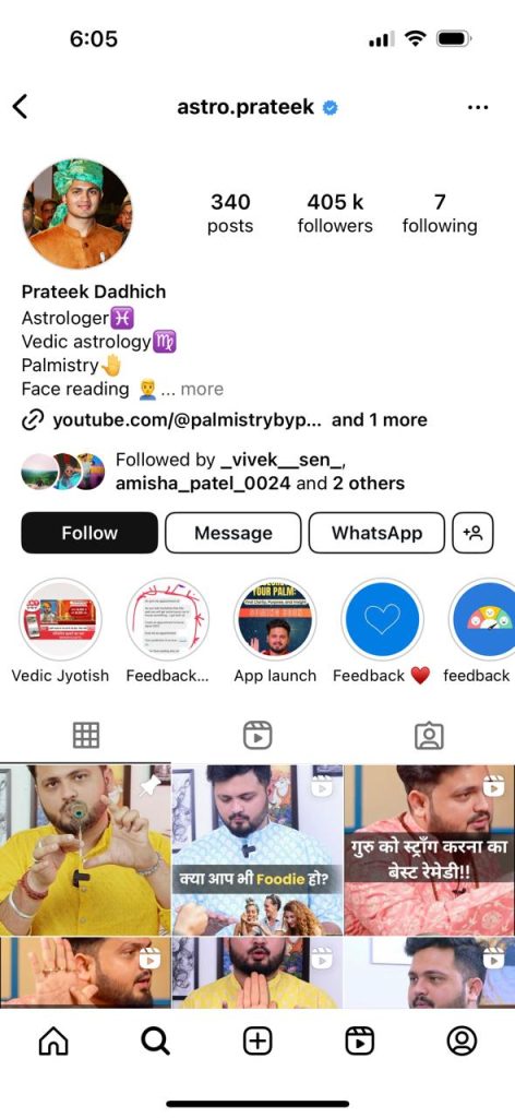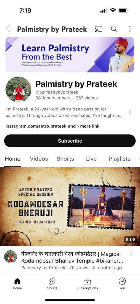 Astro expert Prateek has a wealth of expertise as a Vedic astrologer and palmist, accumulating over 15 years of dedicated practice. His journey began at the age of 8. Since then, he has guided countless clients toward clarity and purpose in their lives. Renowned for his insightful and compassionate approach, Astro Prateek harnesses the profound wisdom of astrology and palmistry to illuminate his clients’ life paths.